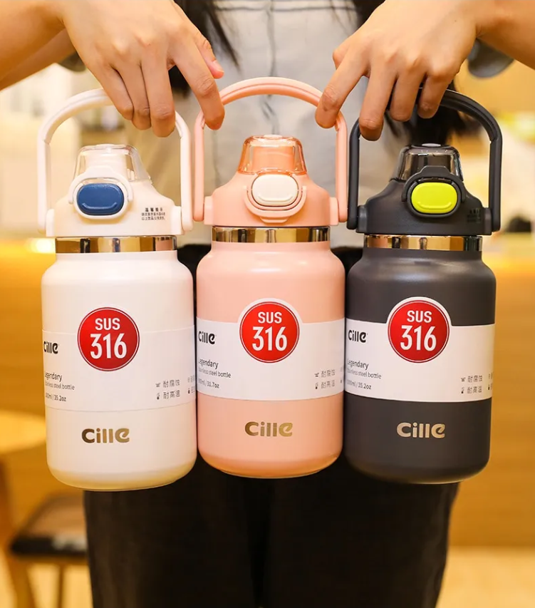 Cille 1000ml SUS 316 Stainless Steel Hot and Cold Water Bottle (Dual Mouth)