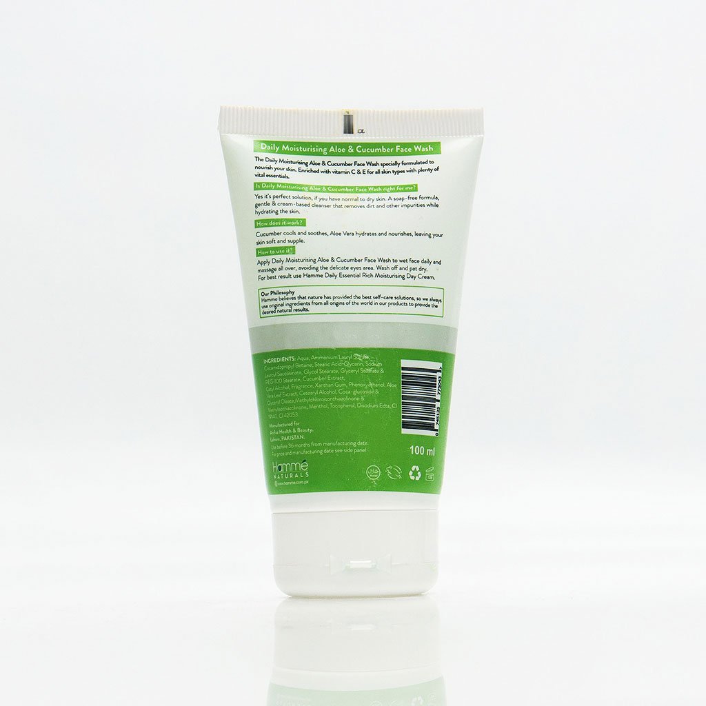 Hamm? Naturals Daily Moisturizing Face Wash is infused with pure aloe vera & cucumber extract that soothes, softens and moisturizes your skin, leaving a beaming, natural glow on your face. Specifically formulated to fight against dryness and replenish your skin to keep it hydrated for a long time, our eminent face wash for dry skin helps get rid of the flakiness and moisture loss